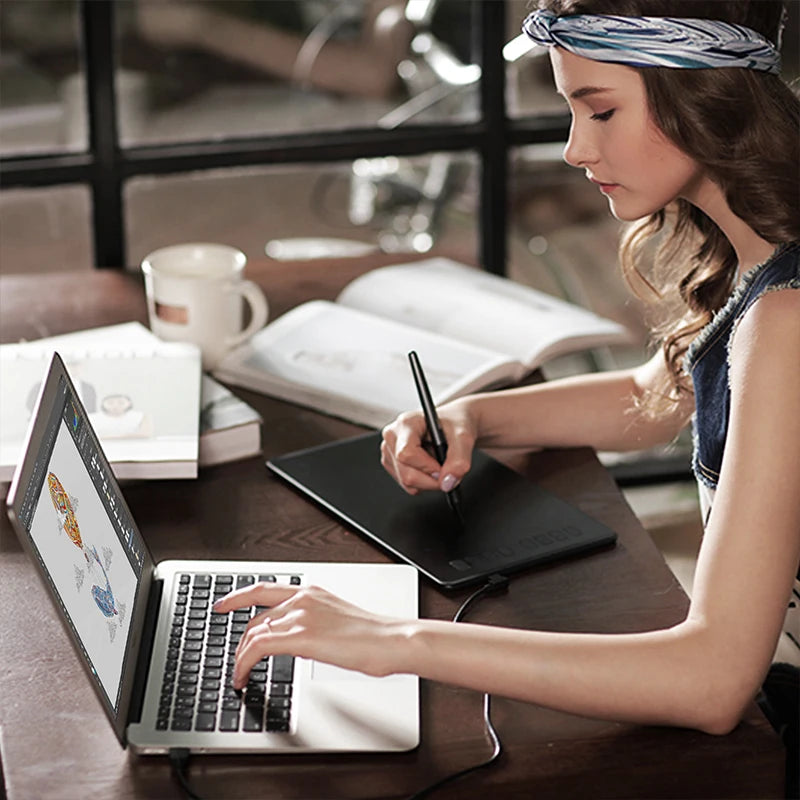 - Bär och arbeta var som helst tack vare den slanka 8 mm profilen och den lätta designen på 497 g, plus ett bekvämt aktivt område på 8,7" x 5,4" för naturlig ritdynamik.