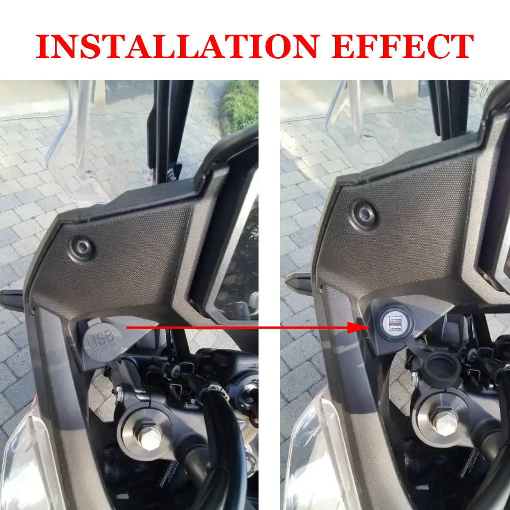Med en kombinerad utgång på 2A över två USB-portar erbjuder den en pålitlig laddningslösning utan att överbelasta motorcykelns elsystem. Den icke-destruktiva installationen innebär att du kan uppgradera din motorcykel utan att skära eller borra, vilket bevarar motorcykelns integritet.
