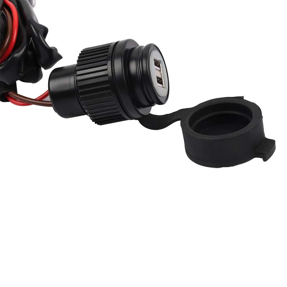 - Dubbel USB-portar låter dig ladda två enheter samtidigt, även när du använder annan elektronik på motorcykeln.