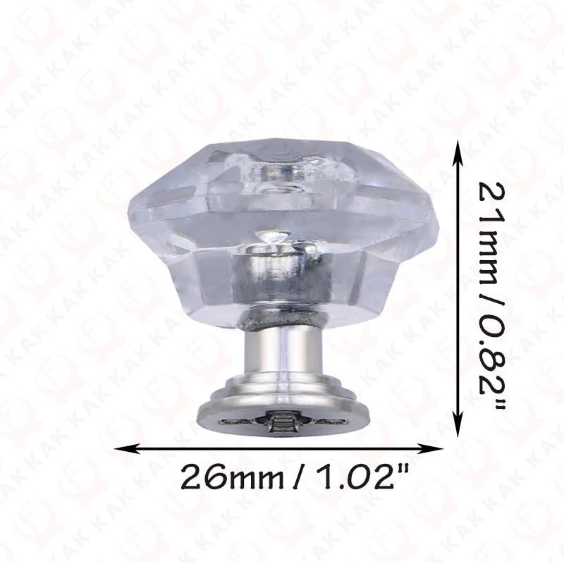 Uppgradera dina möbler med KAK Akryl Kristall Diamant 26mm Skåpsknopp. Denna moderna knopp är tillverkad av klar akryl med diamantliknande fasetter som fångar ljuset och tillför en touch av glans till vilket rum som helst. Den 26 mm diameter och 22 mm höjd skapar ett balanserat, bekvämt grepp, medan designen med ett enda hål gör installationen snabb och enkel.