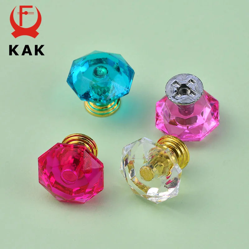 KAK Akryl Kristall Diamant 26mm Skåpknopp Färgglad