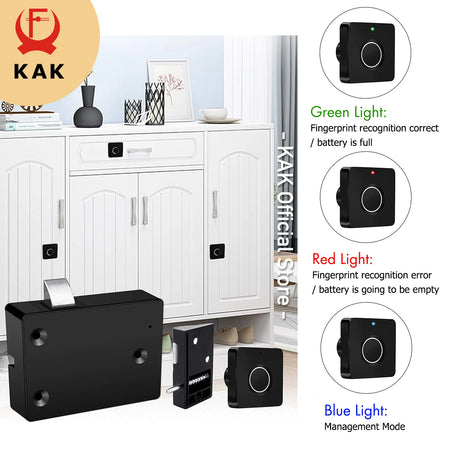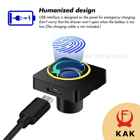 Upptäck KAK Biometrisk Fingeravtryckslås — en elegant, nyckelfri lösning designad för skåp, lådor och garderober. Tillverkad av hållbar zinklegering och ABS i en matt svart finish, använder den ditt unika fingeravtryck för snabb, säker åtkomst. Lås upp på cirka 0,5 sekunder med 360-graders igenkänning, vilket eliminerar behovet av nycklar eller koder och minskar risken för förlorade kombinationer. En låg batterivarning och USB nödladdning säkerställer att du aldrig blir utelåst av ett dött batteri.