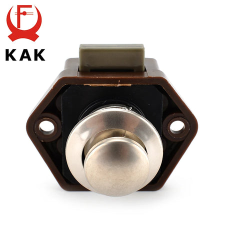 Träffa KAK Camper Car Push Lock 20mm Skåp Låda Lås Hårdvara, en mångsidig låslösning designad för husvagnar, husbilar, båtar och heminredning. Tillverkad av robust ABS plus zinklegering, kombinerar detta lås säker låsning med en bekväm tryckknappsfunktion, vilket hjälper dörrar att förbli ordentligt stängda under resa och lätt att öppna när de är parkerade. Det 20mm skurna hålet passar standardkabinett, och intervallet för dörtjocklek på 15–27mm säkerställer bred kompatibilitet. Finns i Brun, Pärlnickel, Krom och Vit för att matcha eller accentuera din inredning. Fabriken stöder färg anpassning och grossistpriser för att passa dina projektbehov.
