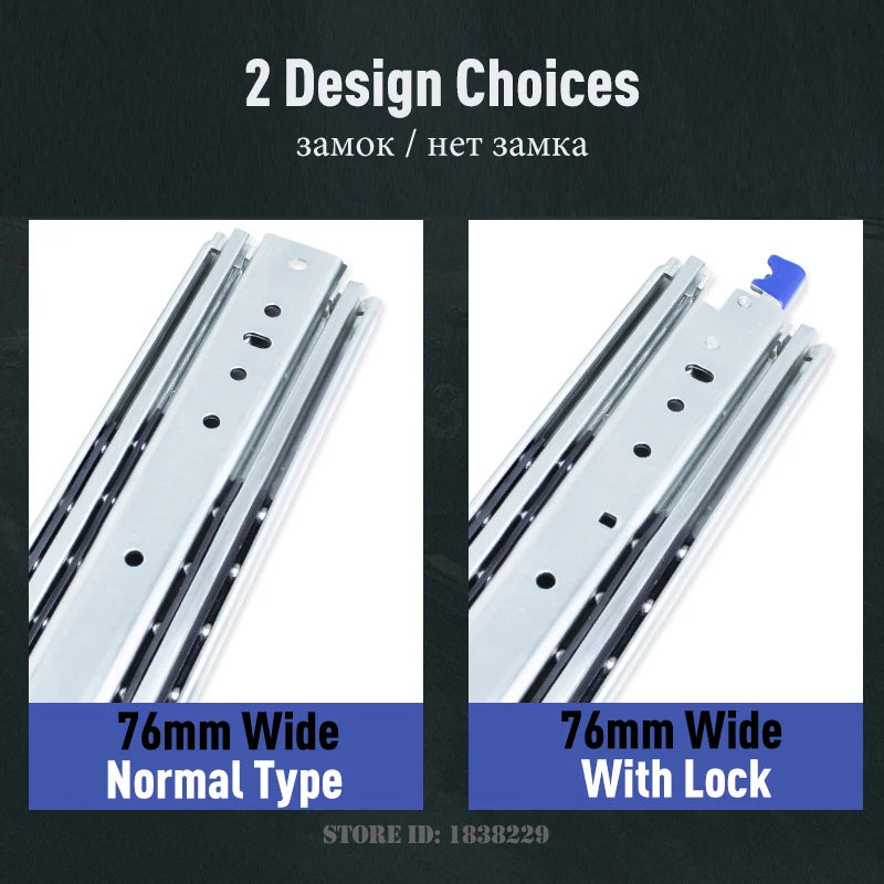Tillverkade av förtjockat zinkbelagt kallvalsat stål, är dessa skenor designade för robust användning och lång livslängd. Den blå tätande ytbehandlingen ger rost- och oxidationsskydd, så prestandan förblir stabil även i utmanande miljöer. Med en bredd på 76 mm och en tjocklek på 2,5 mm, samt längder från 10 till 50 tum (250 mm till 1250 mm), kan du anpassa din installation för rejäla lådor samtidigt som du njuter av pålitlig, tyst drift tack vare precisionskullager och fullutdragskenor.