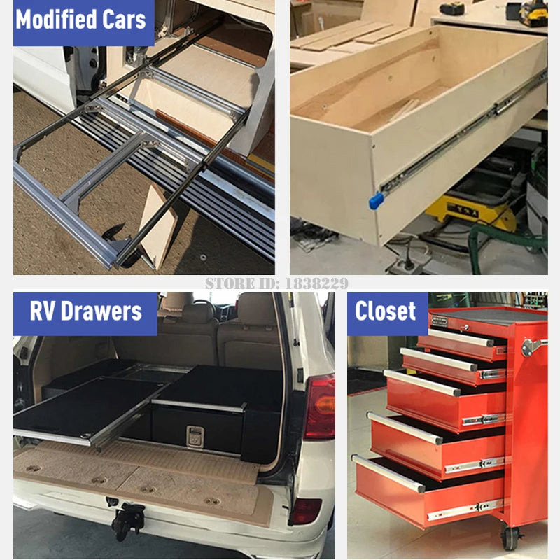 Oavsett om du utrustar en camper, en arbetsbil eller en tung förvaringslåda i ett fordon, håller dessa skenor sig lugna under tryck. Dragöppningsmetoden har tresektions full utdragning för enkel åtkomst till varje del av lasten, och monteringsutrymmet på 19 mm ± 5 mm förenklar installationen. Normala versioner utan lås är idealiska för stora lastlådor, medan lås-in/lås-ut versioner ger extra säkerhet vid gupp och under resor.