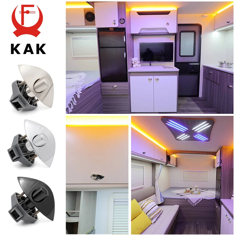 Förbättra reseklara skåp med KAK Tryckknappslås 20mm Silver RV Lådsnapp Nyckelfri. Byggd för hållbarhet och enkel användning, kombinerar detta 20mm lås robust zinklegering och ABS-konstruktion med en enkel tryck-öppna, tryck-lås design. Finns i svart, krom eller borstad nickel finish, passar 14-16mm tjocka dörrar och ger pålitlig nyckelfri säkerhet för husbilar, husvagnar och motorhem.
