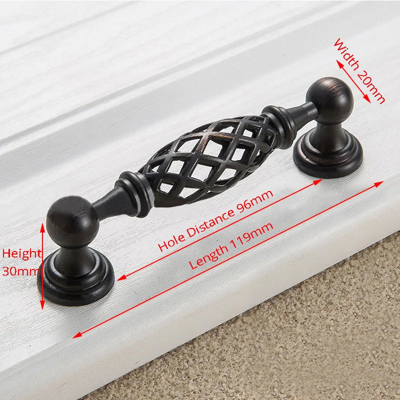 Uppgradera dina skåp, lådor och garderober med Antique Bronze Birdcage Cabinet Handles Wardrobe Pulls 96mm. Tillverkade av KAK i hållbar zinklegering, kombinerar dessa handtag antik bronsfinish med en ren europeisk modern silhuett för en omedelbar stiluppgradering i kök, garderober och vardagsrum. Finisharna finns i Grön Brons, Röd Brons eller Svart, vilket erbjuder ett mångsidigt utseende som åldras vackert. Med ett hålavståndsalternativ på 96 mm (och 128 mm som alternativ) passar de enkelt på befintlig hårdvara. Den tjocka, konturerade kroppen ger ett bekvämt grepp, medan den korrosionsbeständiga finishen förblir levande vid daglig användning.