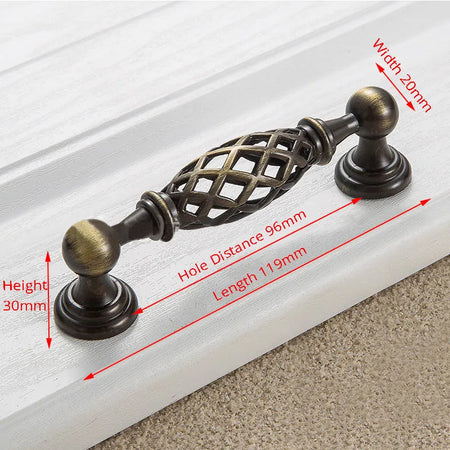 Antika brons fågelbur skåp handtag garderobsdrag 96mm