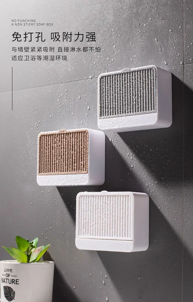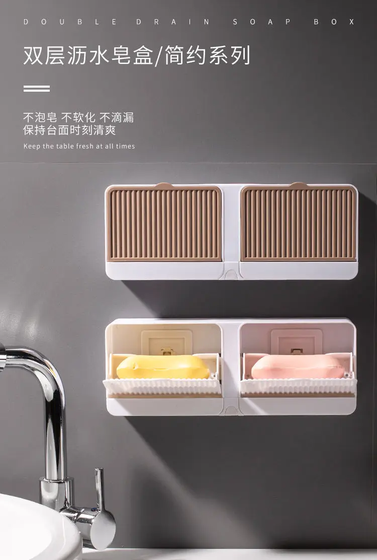 Kreativ väggmonterad tvålbox med lock dubbla rutnät tvål dränering rack badrum tvålhållare badrumstillbehör