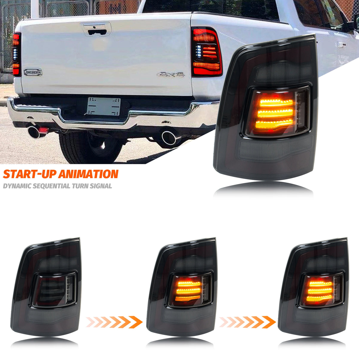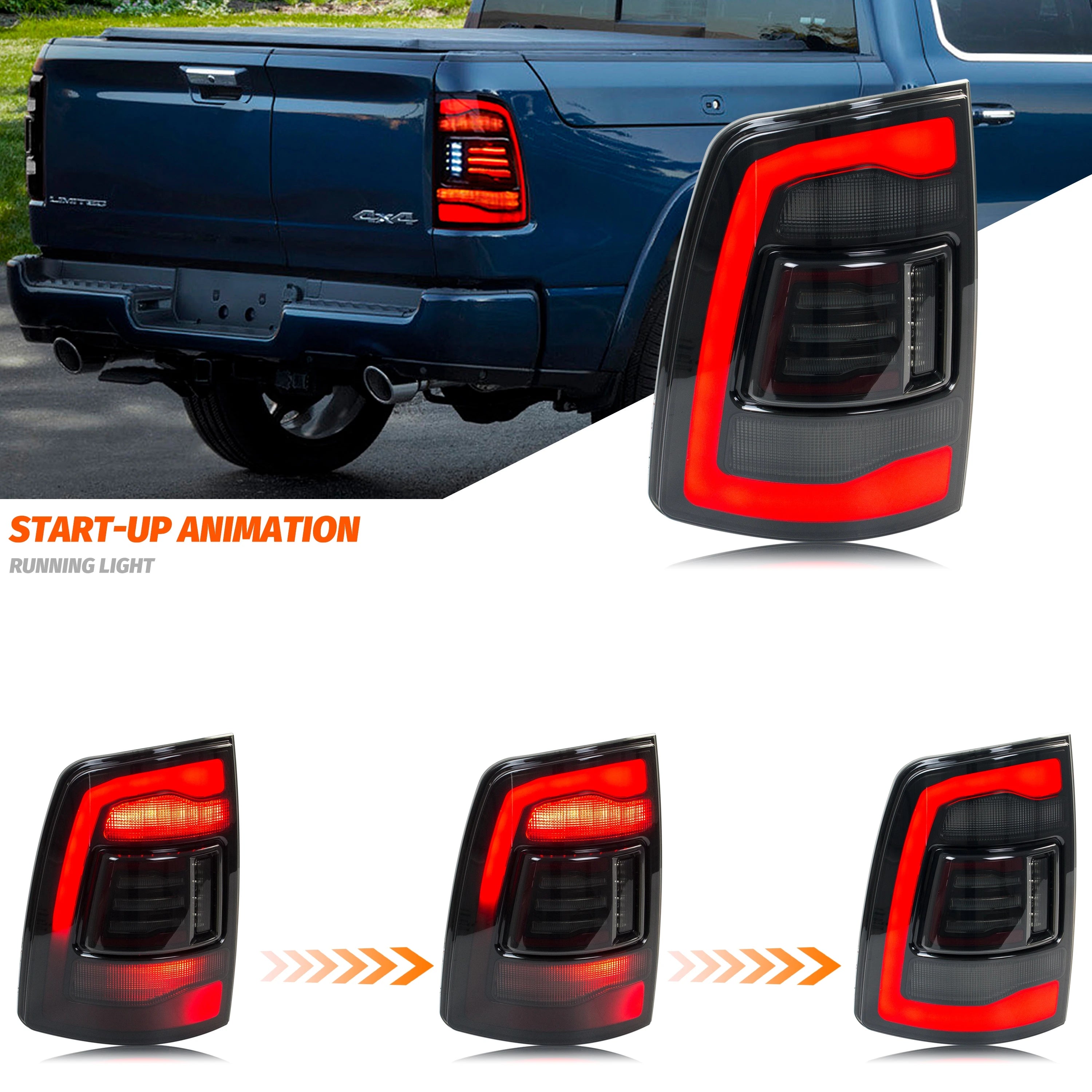 - Förhöjer din Rams bakre utseende med dynamiska sekventiella blinkers som tydligt visar svängintention, vilket ökar säkerheten för dig och närliggande förare.