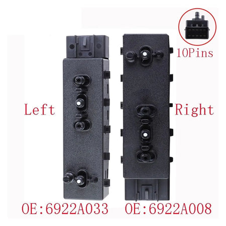 Designad för sömlös kompatibilitet över en rad Mitsubishi-modeller, täcker detta brytarset populära konfigurationer från Outlander, ASX, Lancer Evolution och mer. Den vänstra brytaren har artikelnummer 6922A033, medan den högra brytaren är 6922A008. Varje brytare är utformad för att passa exakt och installeras enkelt, så att du kan komma tillbaka på vägen med minimal stilleståndstid.