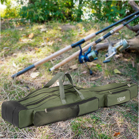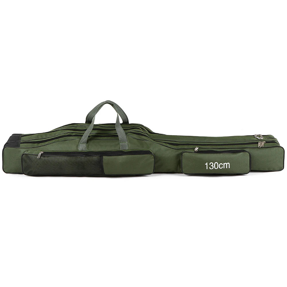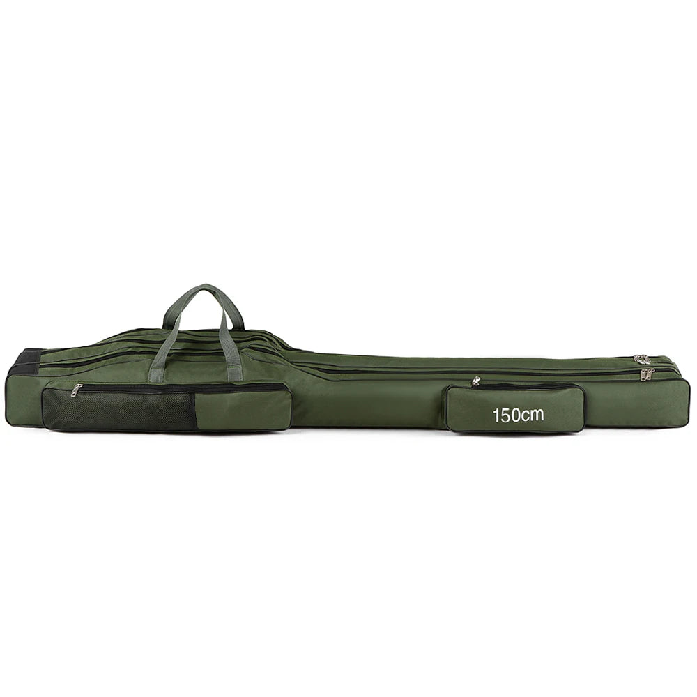 Tillverkad av högkvalitativ Oxford-tyg, är väskan rivtålig och vattenavvisande, byggd för att klara av påfrestningarna från regelbundna fisketurer. Den viks snyggt för kompakt förvaring och är tillräckligt portabel för att bäras i handtaget eller den justerbara axelremmen. Finns i Armégrön eller Svart och i längderna 130 cm eller 150 cm, den är lämplig för en rad spöuppsättningar. Med breda öppningar och dubbla dragkedjor kan du snabbt och effektivt nå din utrustning, vilket hjälper dig att fokusera mer på fångsten och mindre på utrustningshanteringen.