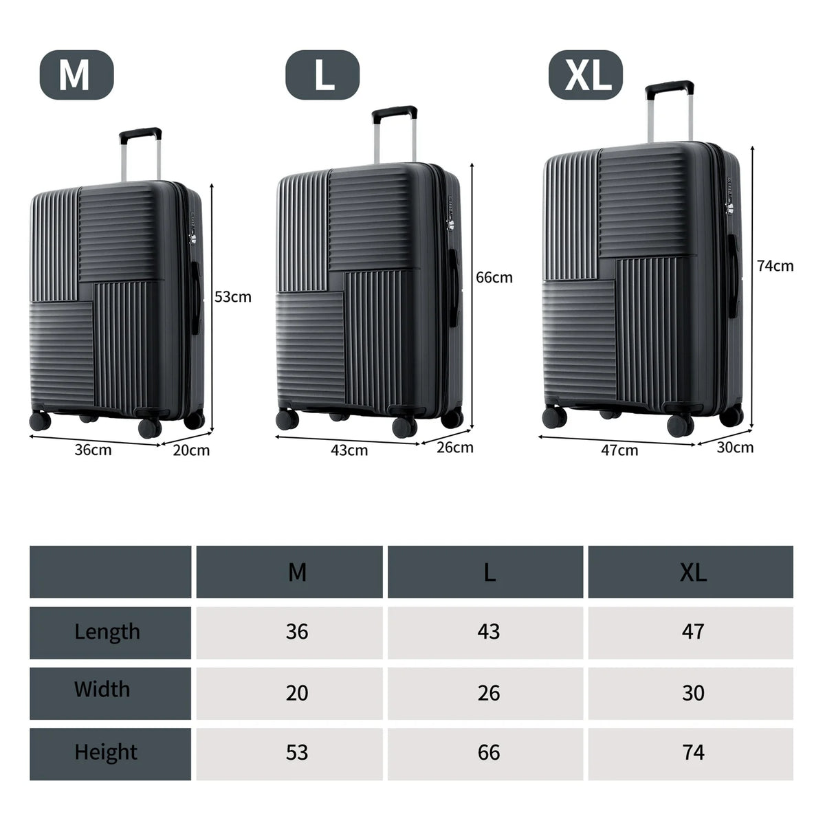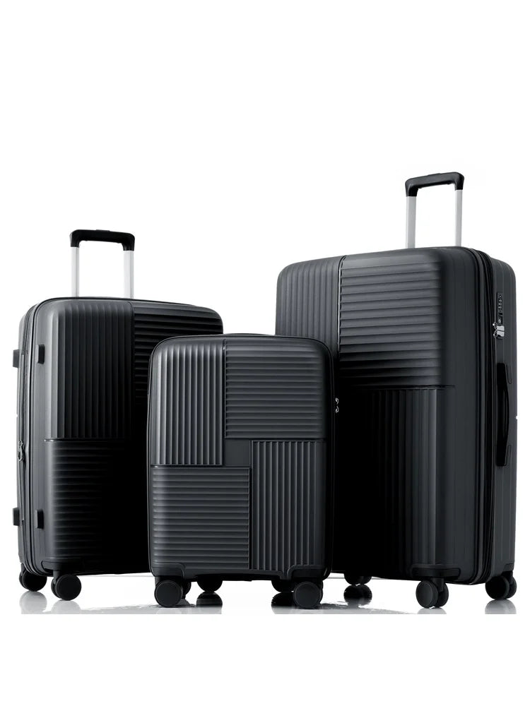 Möt Jugacool Black PP Resväska Set — en lätt, hållbar resekompanjon designad för att förenkla varje resa. Tillverkad av robust PP (polypropen), maximerar denna tre-delars bagagesamling (storlekarna M, L och XL) packutrymmet samtidigt som den tål påfrestningarna från frekvent resande. Varje väska rullar på smidiga 360° dubbla hjul för enkel manövrering genom flygplatser, stationer och stadsgator, så att du kan glida istället för att dra dina väskor.
