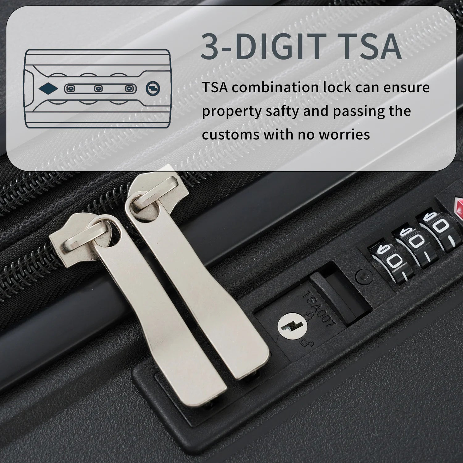 Jugacool Svart PP Resväska Set Lättviktig Hållbar TSA Lås