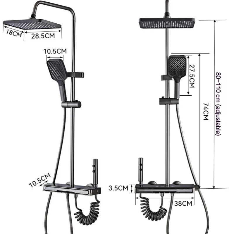 Den övre duschen kan justeras universellt, handduschen kan justera höjden och lutningsvinkeln, vilket är lämpligt för olika användares behov.