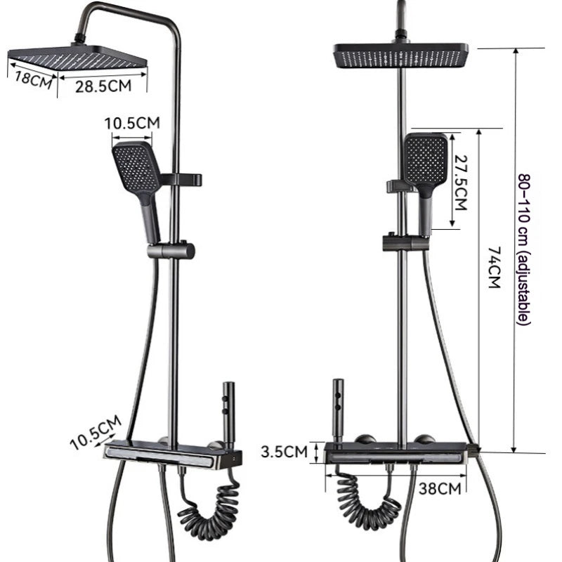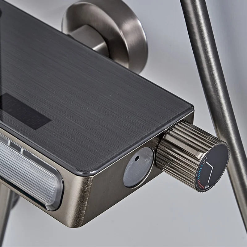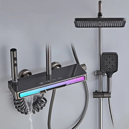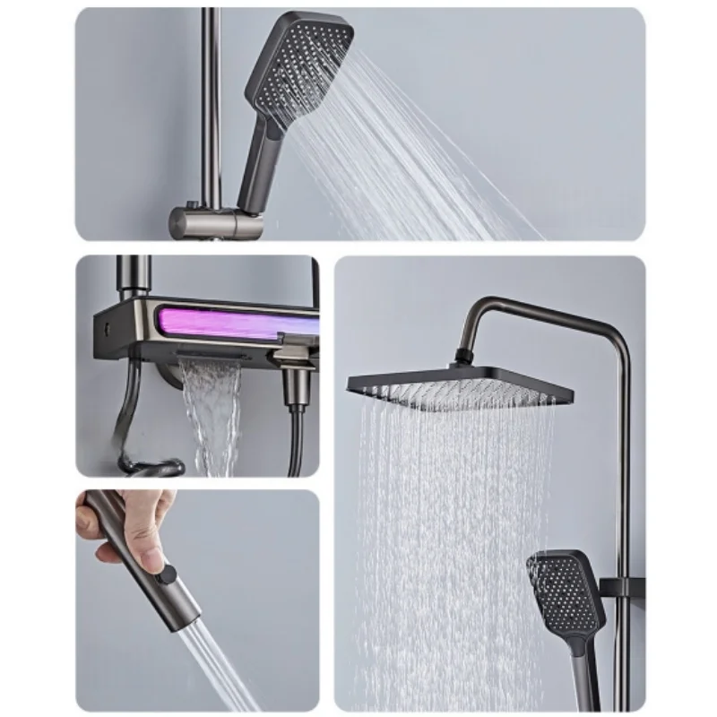 Lyxigt Badrum Duschsystem Duschkran Full Set med Ljus Piano Nyckel Smart Temperatur Digital Display Varm Kall Blandare