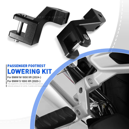 Upplev en bekvämare körning med BMW M1000XR bakre fotpinnesänkningskit, designat för S1000XR (2020-) och M1000XR (2024-). Tillverkat av Star Moon Knight, sänker detta aluminiumkit för passagerarfotpinnar fotpinnarna med cirka 45 mm, öppnar knävinkeln och ger en avslappnad, trötthetsfri körställning—perfekt för långa sträckor och delad körkomfort.