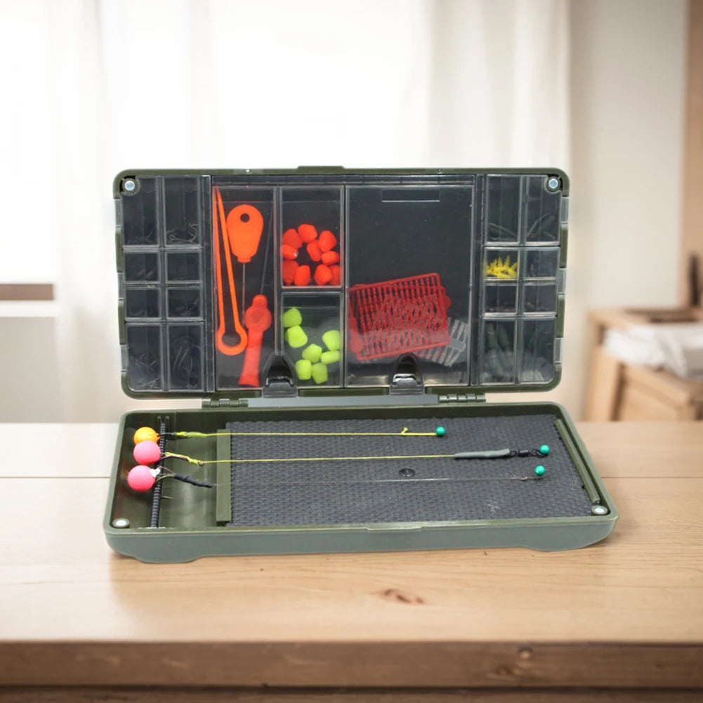 Träffa det magnetiska karpfiskerigget, en kompakt plastfack som är designad för att hålla färdiga hårriggar, krokar, svängar och bete prydligt organiserade och redo för aktion. Tillverkad av hållbar PP-plast, står denna robusta tacklebox emot frekvent användning vid stranden, i båten eller i din bil. Den magnetiska stängningen ger snabb, säker åtkomst, så att du kan byta riggar och justera utrustning utan att fumla. Med flera säkra fack och ett centralt lagringsområde förblir allt prydligt och lätt att hitta, vilket minskar trassel och slöseri med tid under en session. Ett praktiskt tillägg för både fritidsfiskare och seriösa tävlande, denna tacklebox hjälper dig att hålla dig organiserad och redo med utrustningen på ett ögonblicks varsel.