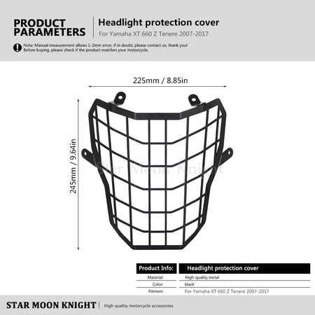 - Robust strålkastarskydd för offroad-äventyr—håll din Yamaha XT 660 Z Teneres strålkastare intakt när du kör på steniga stigar eller genom snår.