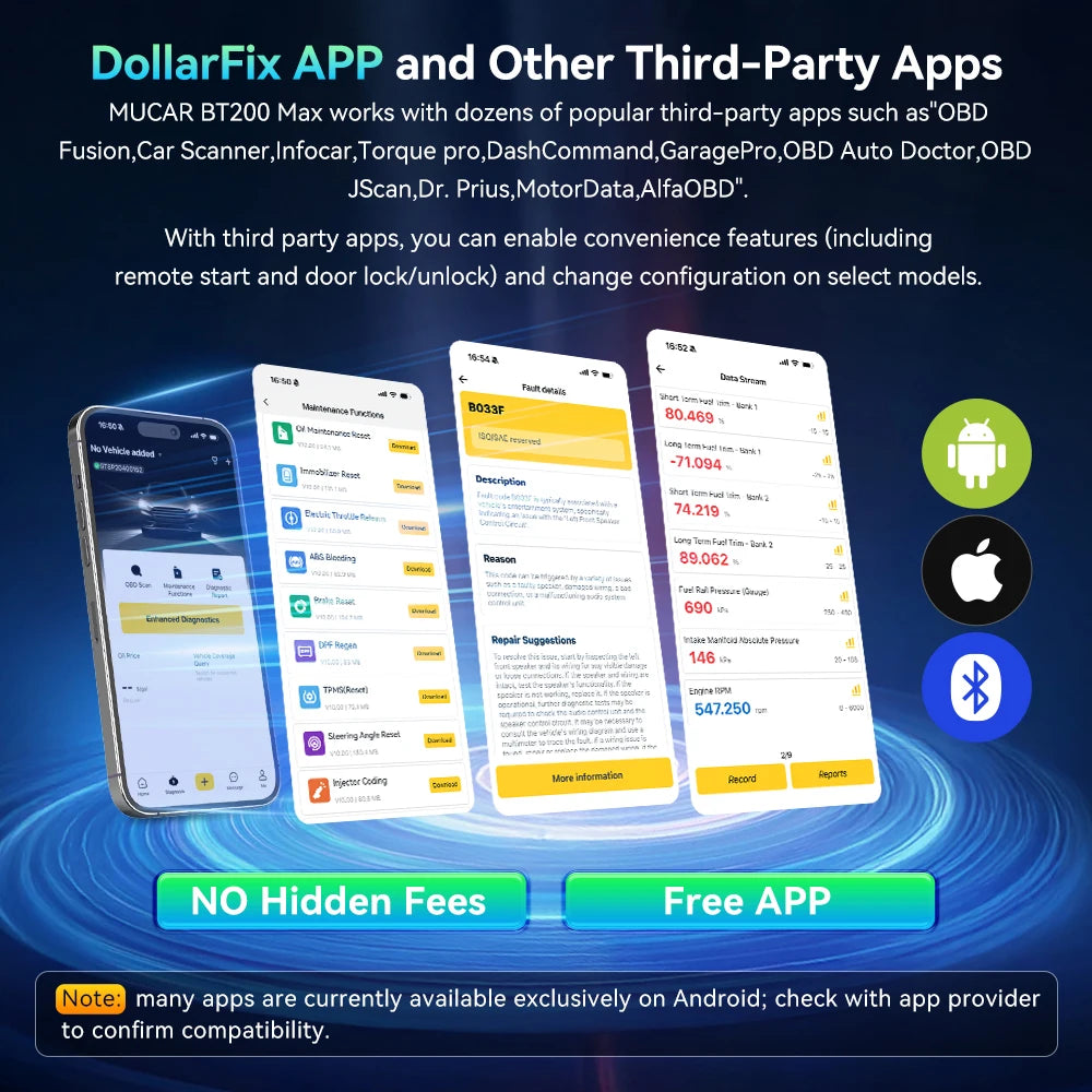 MUCAR BT200 MAX effektiviserar felsökning, sparar tid och minskar gissningar för både gör-det-själv-entusiaster och professionella tekniker. Omedelbar kodsökning, live-datastreamar och AI-insikter hjälper till att diagnostisera problem snabbare, undvika onödiga reservdelsbyten och förbättra fordonets drifttid.