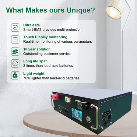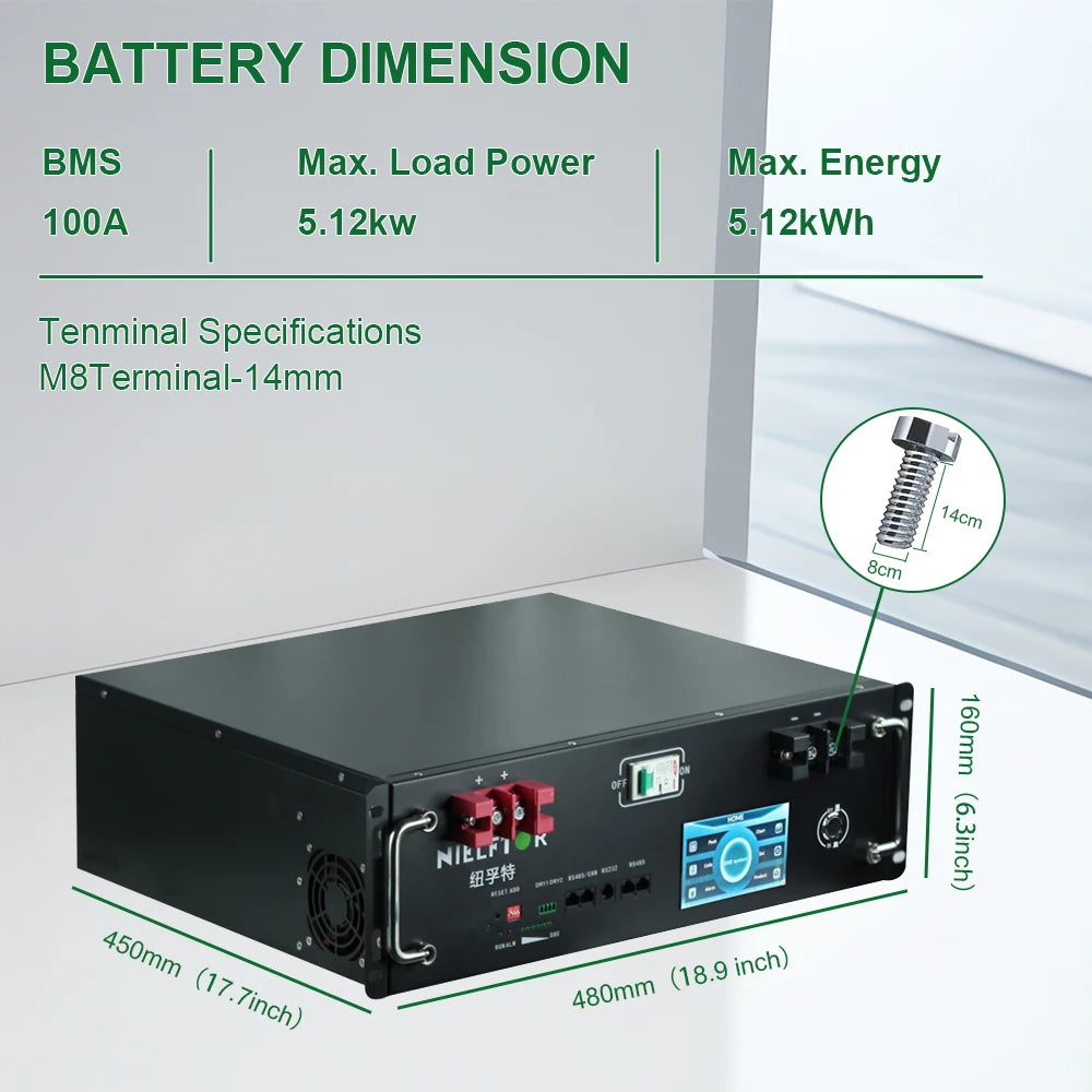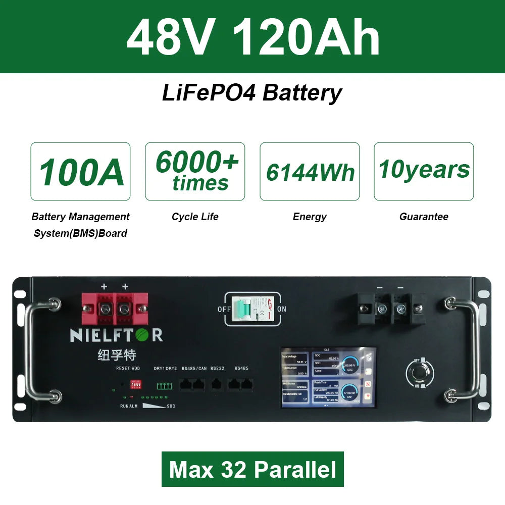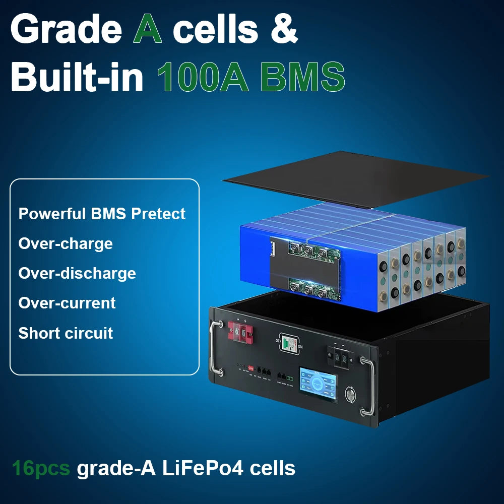 48V LiFePO4 batteripaket 120Ah med inbyggd BMS för husbilssolapplikationer 5120Wh lång livslängd CE RoHS UL