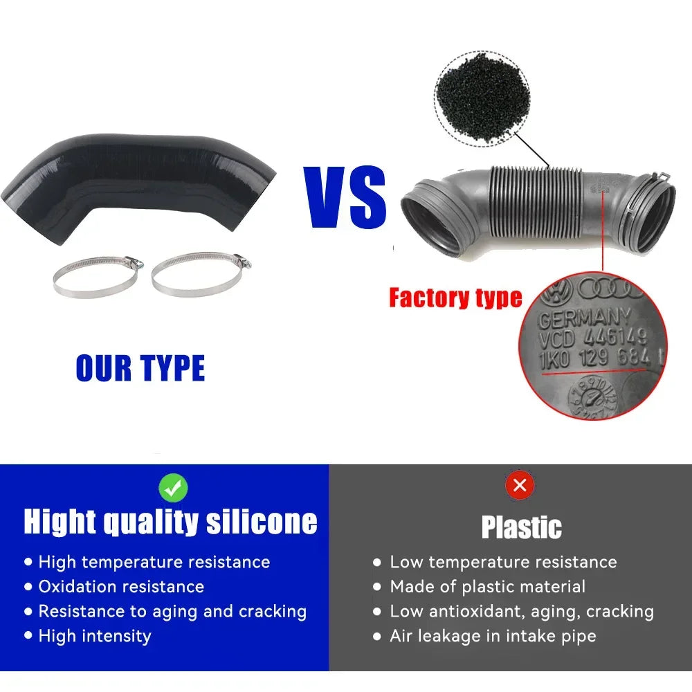 - 1x Högflöde Silikonflätad Insugsslang för EA888 2gen (Audi A3 8P, VW Beetle, Golf Mk5/Mk6)