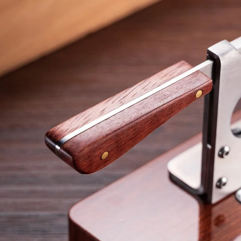 Upptäck den lyxiga bordscigarrskäraren i rostfritt stål med press, ett precisionsverktyg designat för konnässörer som värdesätter rena snitt, pålitlighet och förfinad estetik. Tillverkad av högkvalitativt rostfritt stål, använder denna bordsskäraren en mjuk pressrörelse för att säkerställa ett perfekt, jämnt snitt varje gång, vilket hjälper dig att njuta av din cigarr utan fransar eller revor. Dess stadiga bas håller skäraren stabil på vilket bord eller skrivbord som helst, vilket gör den idealisk för hemmalounger, klubbar eller som en presentklar lösning.