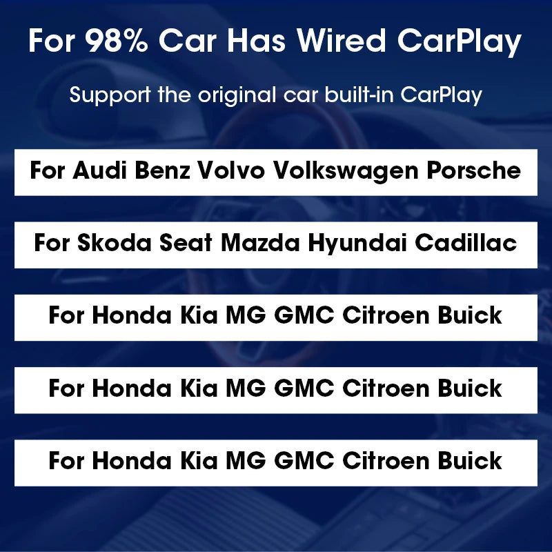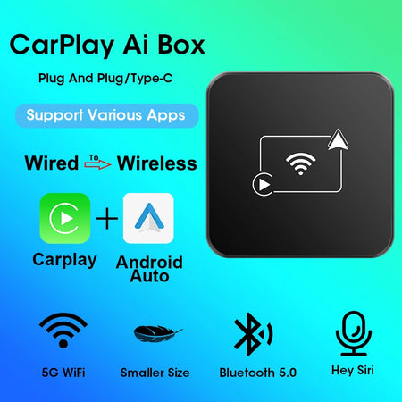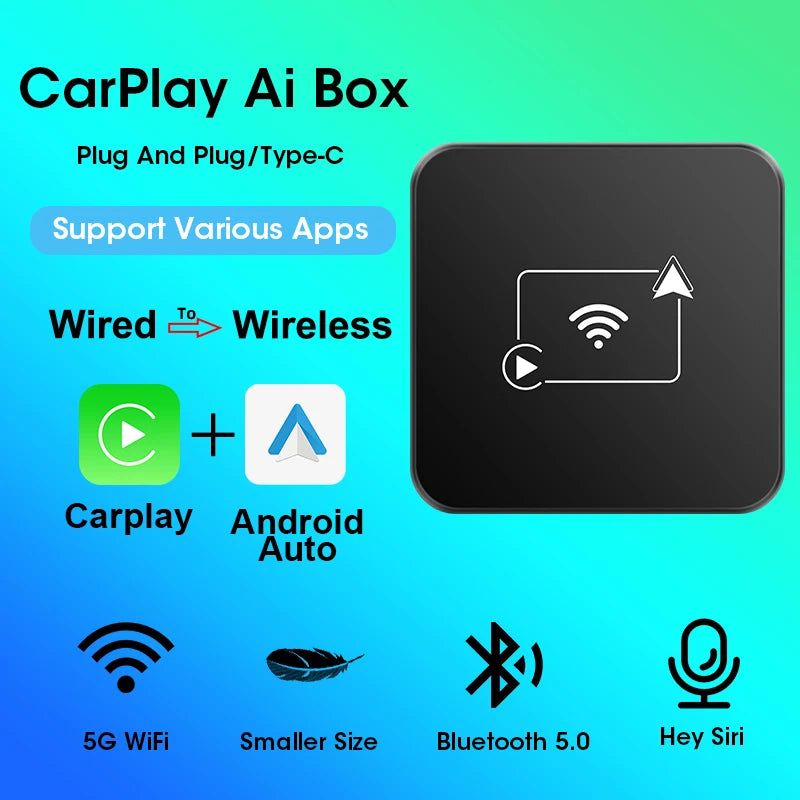 Vi presenterar den nya Mini Box Trådbunden till Trådlös CarPlay Android Auto Adapter – en plug-and-play universallösning designad för BMW, Audi, Toyota, Kia, Nissan och VW. Denna kompakta enhet förvandlar din bils trådbundna CarPlay eller Android Auto till en trådlös upplevelse, så att du kan njuta av sömlös appåtkomst, navigation och handsfree bekvämlighet medan du kör. Viktigt meddelande: Om din bil inte har fabriksmonterad OEM trådbunden CarPlay eller Android Auto kan denna adapter inte aktivera trådlös CarPlay eller Android Auto-funktionalitet. Vänligen verifiera ditt fordons inbyggda system innan användning.