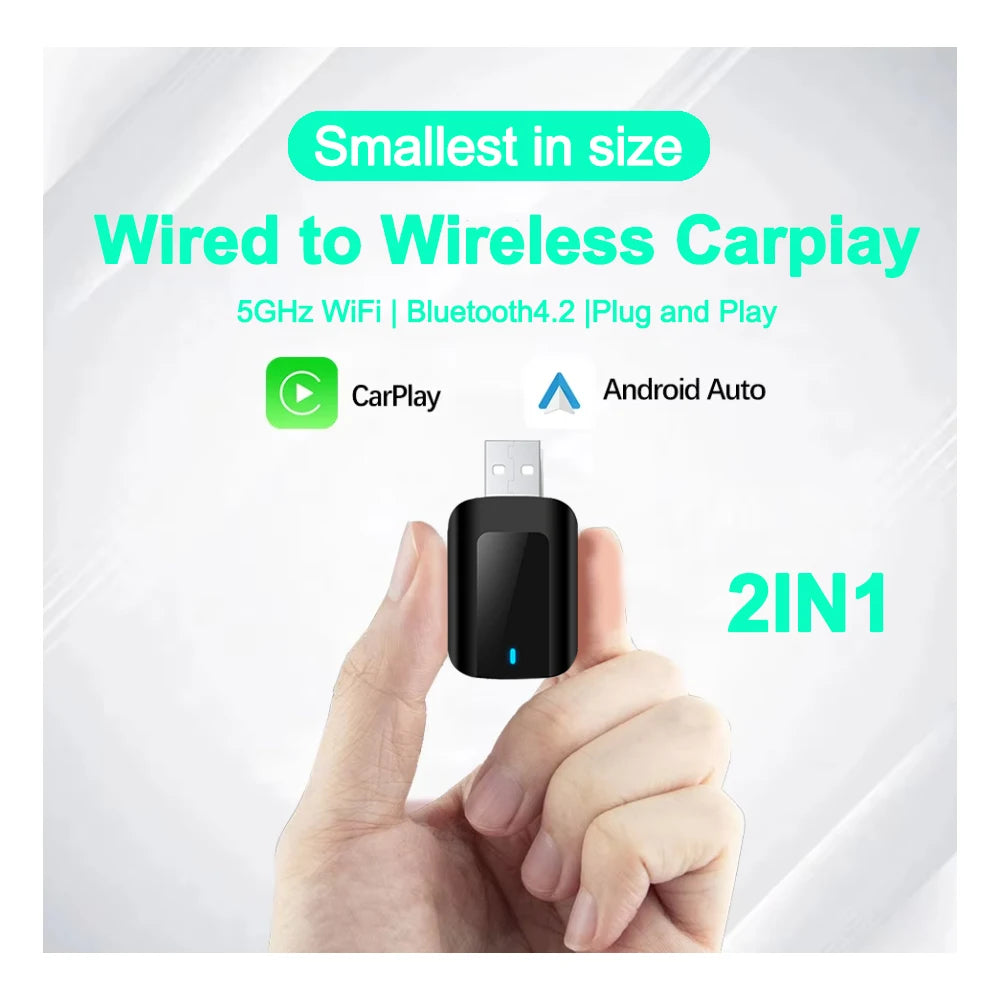 - Wireless CarPlay Android Auto 2-in-1 Mini Box