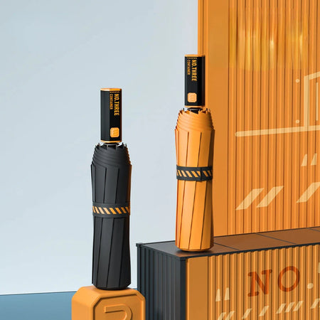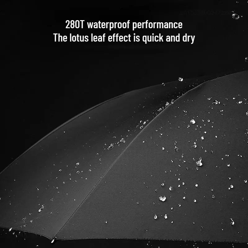 - Överdimensionerad täckning: Den tredubbla vikningen och den breda duken håller dig torr under kraftigt regn, med tio starka ribbor för stabilitet.