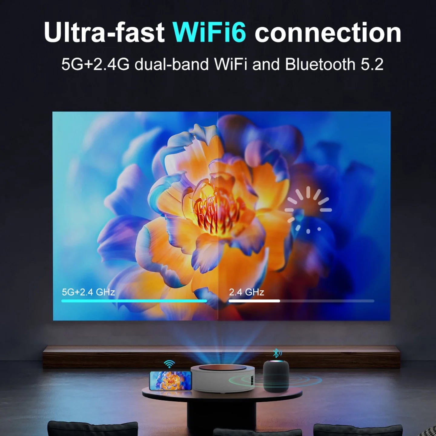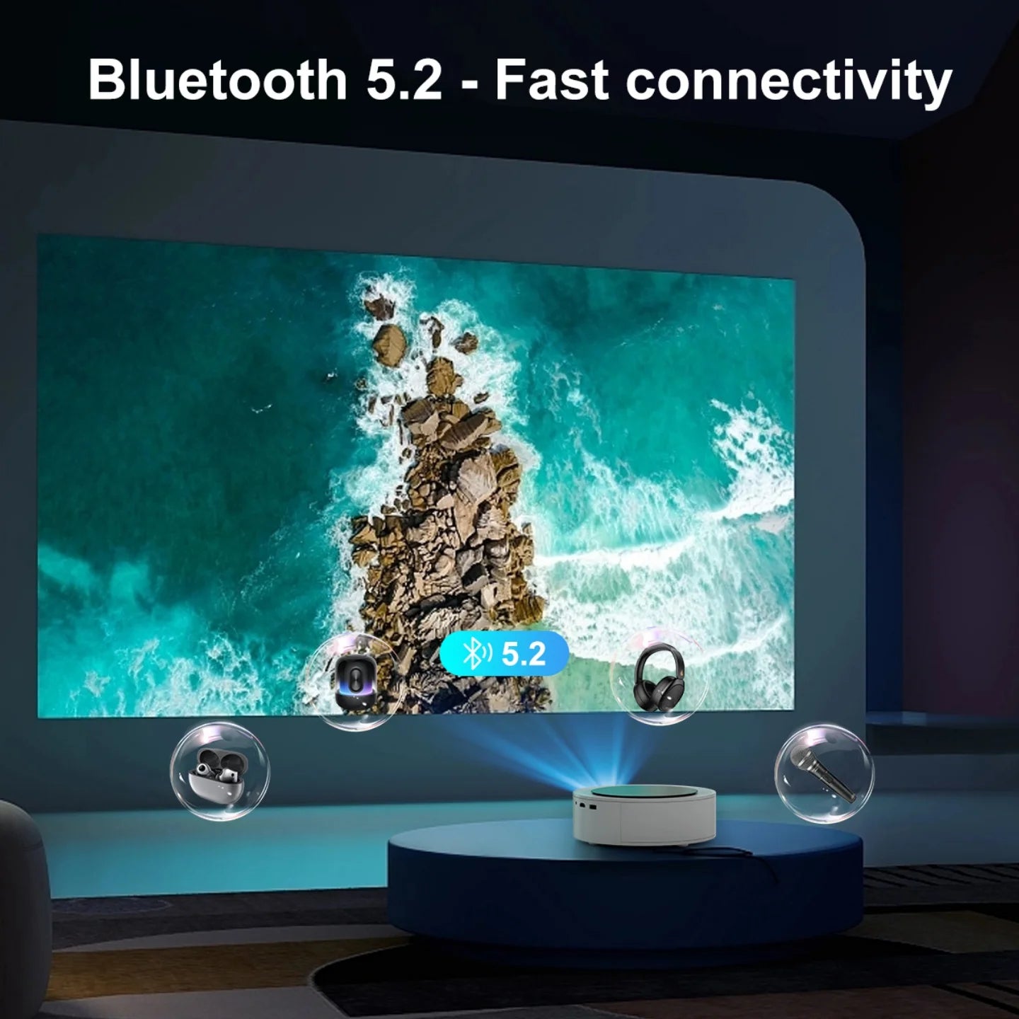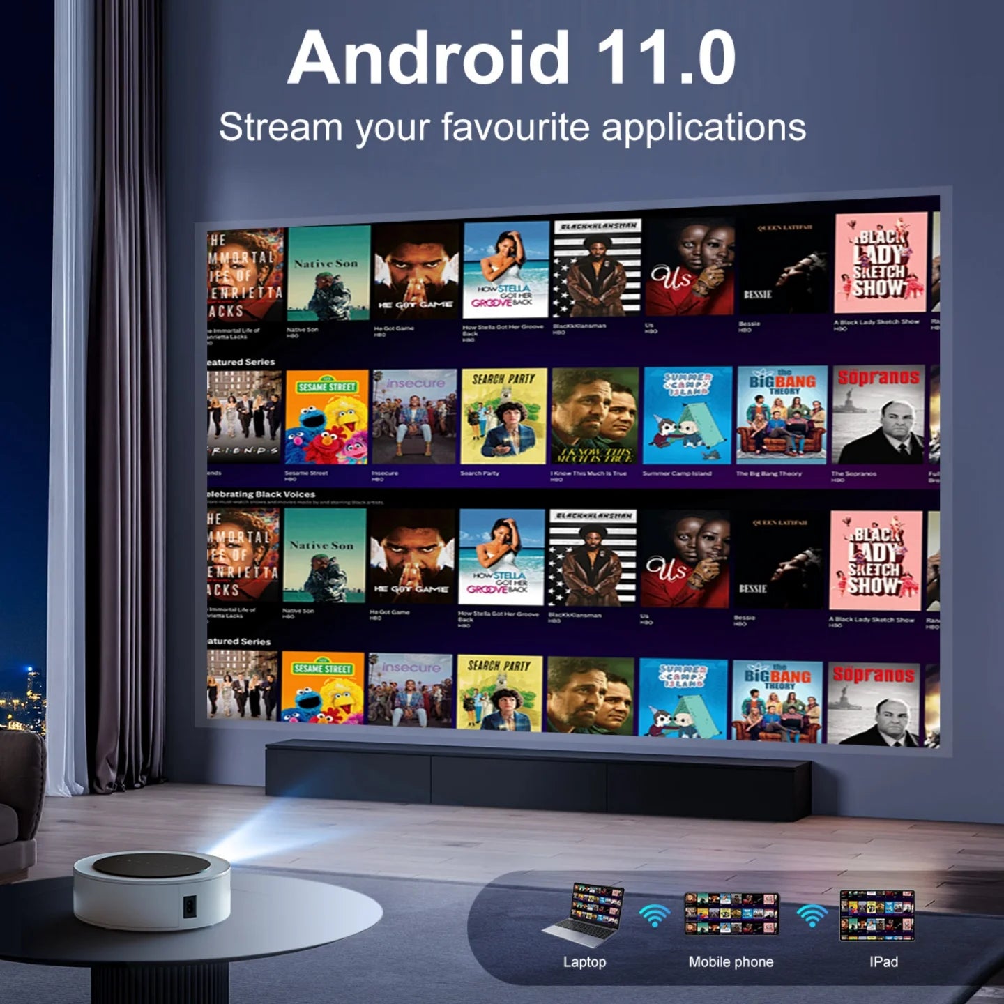 - Smart projektor som kör Android 11.0, som erbjuder tillgång till över 4 000 applikationer