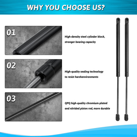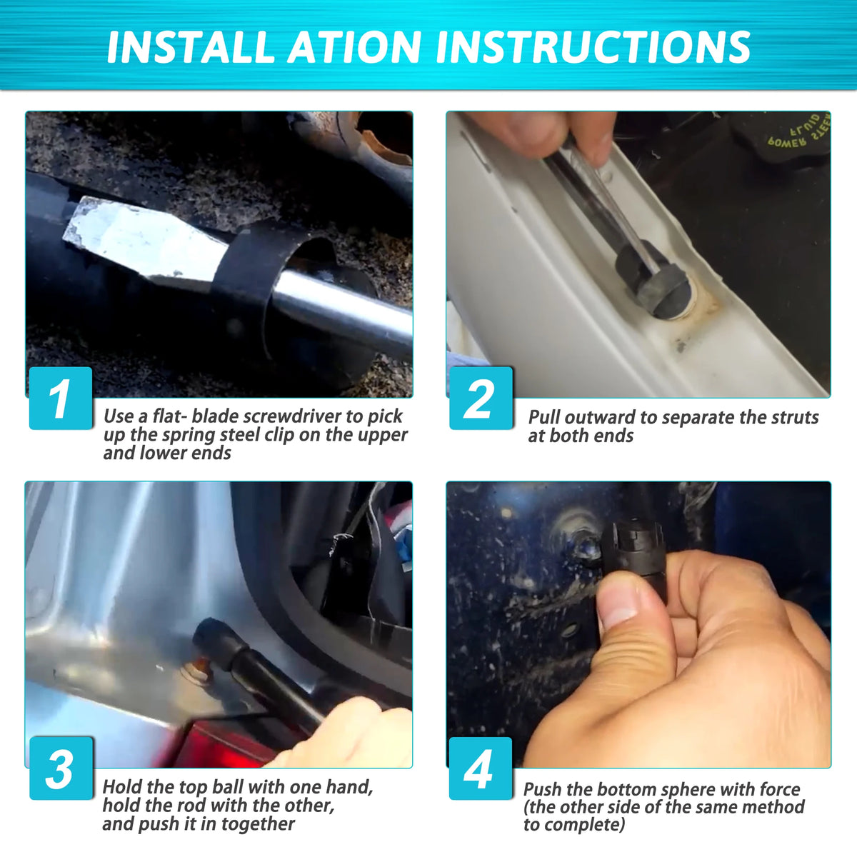 - Återställ balanserad motorhuvlyft: ersätt åldrade eller skadade stöds för att eliminera plötsliga, besvärliga motorhuvfall och upprätthålla motorhuvens justering.