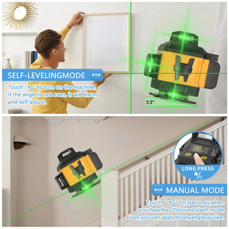 Möt 360 Grad Fyra Huvuden Laser Nivå med Auto Lås Vägg från DWiusty — ett kompakt, högprecisionsnivåverktyg utformat för professionell noggrannhet och enkel installation. Fyra laserhuvuden avger 360-graders linjer för att skapa kompletta horisontella och vertikala referensplan, vilket gör att du kan nivellera, justera och lodrätt ställa in över väggar, tak och golv med självförtroende. Dess auto-lås väggdesign hjälper till att säkra enheten för stabila, upprepbara resultat, vilket gör den idealisk för ombyggnad, kakling, skåp och upphängningsinstallationer.