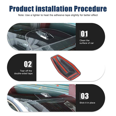 - Installationen använder den medföljande biltejpen. Se till att ytan är ren och torr innan applicering.