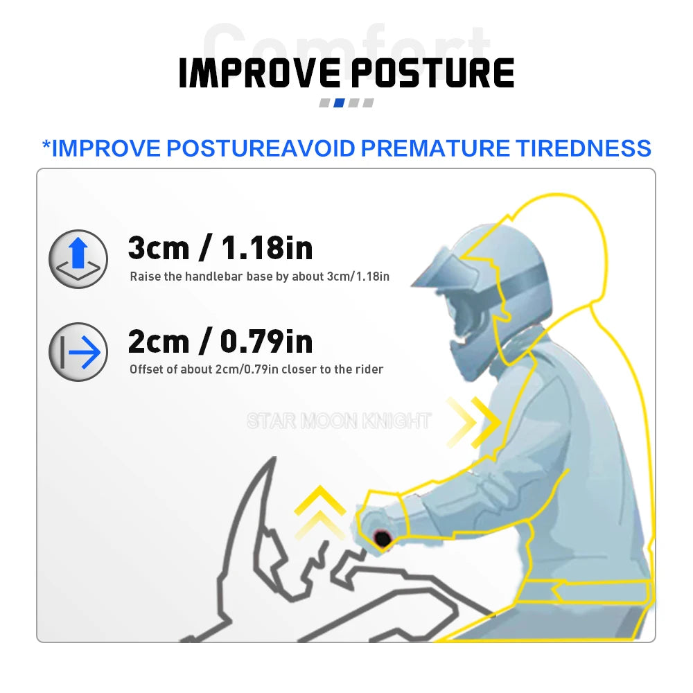 - Förbättrad ergonomi: en högre, närmare kroppen placerad styreposition minskar trötthet på långa turer och ger en bekvämare sittställning.