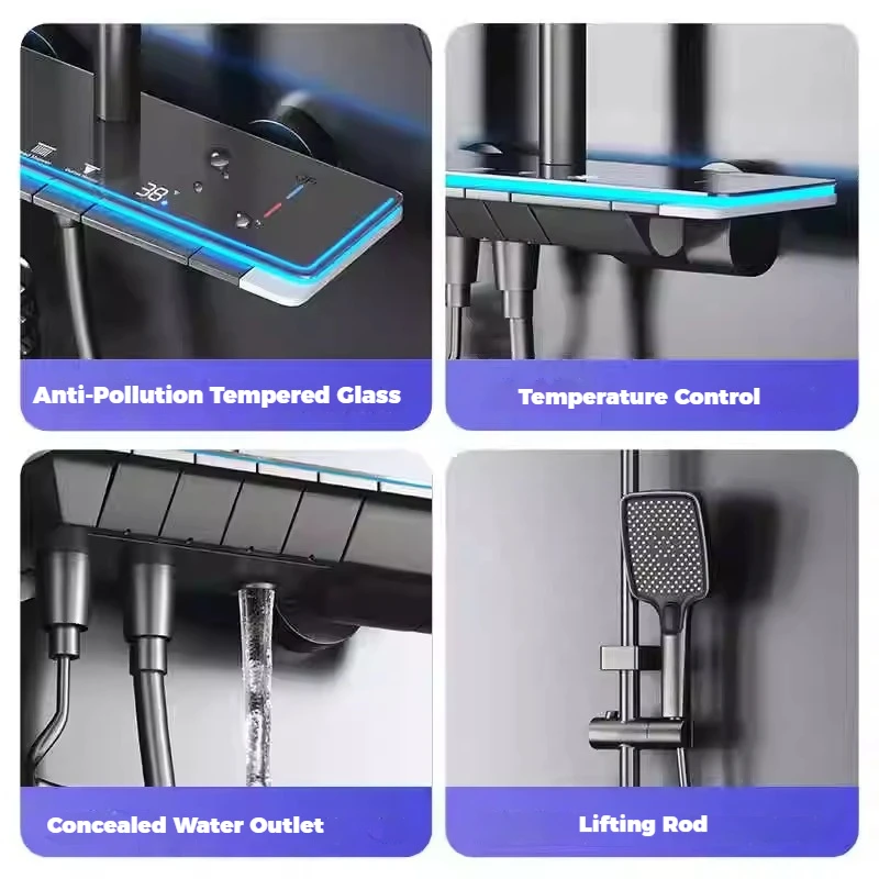 【Skickas från EU】Digital Display Duschset Duschkran Systemset Varm Kall Med Ambient Ljus Badrumsblandare Duschhuvud