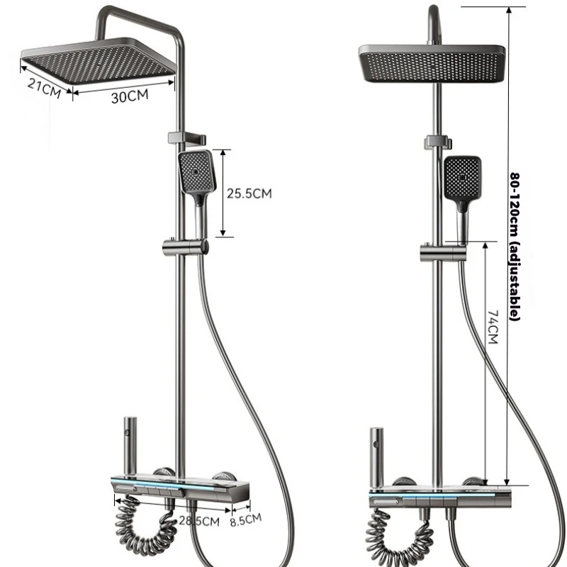 Den övre duschkranen kan justeras universellt, handduschens fäste kan justera höjden och lutningsvinkeln, vilket är lämpligt för olika användares behov.