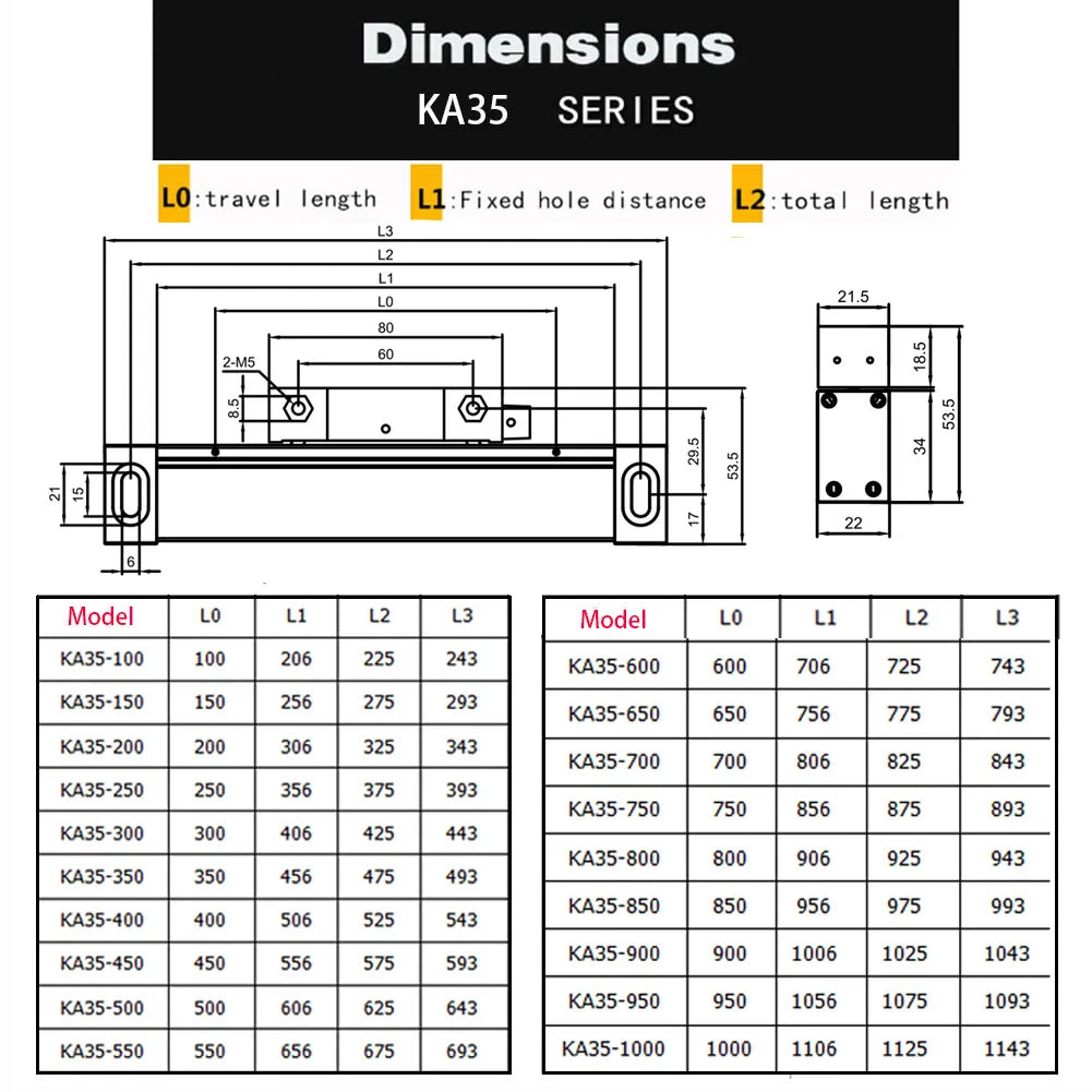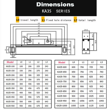 - KA-35 tillgänglig rörelselängd: 100 mm – 1000 mm