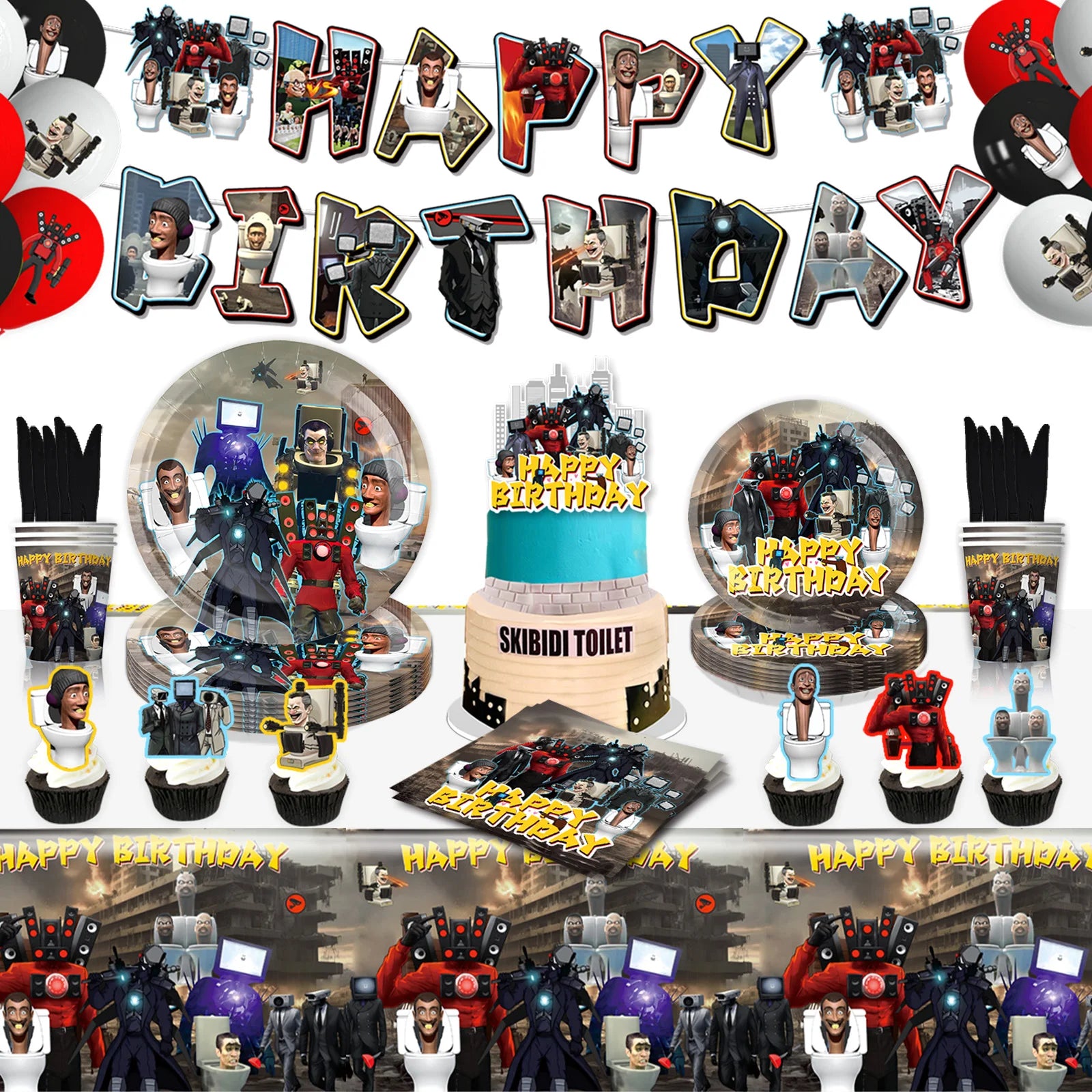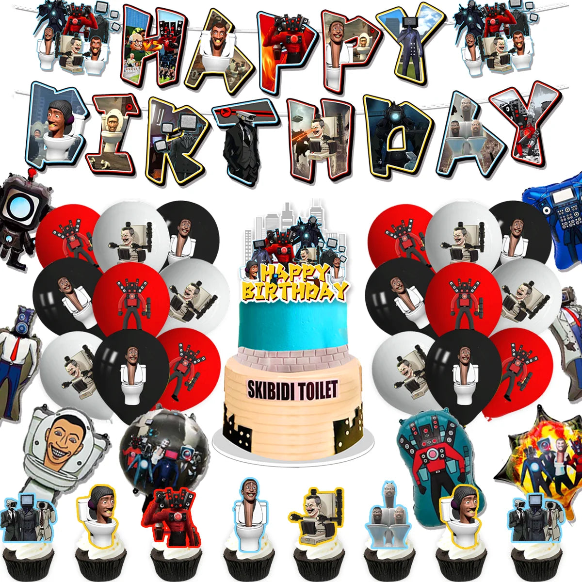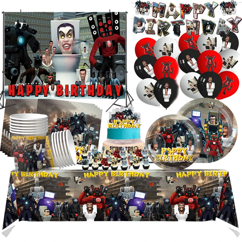 Höj din födelsedagsfirande med den fängslande Skibidi toalettfödelsedagsfestleveranser. Denna kompletta uppsättning är utformad för att skapa en rolig och minnesvärd atmosfär, perfekt för alla samlingar, från barnfester till temaevenemang.