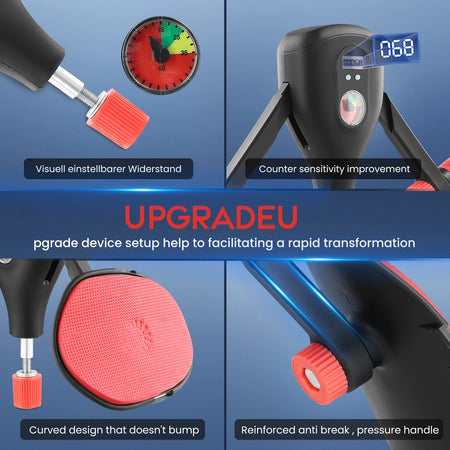 - Börja med lågt motstånd och öka gradvis när du bygger upp självförtroende och kontroll; använd den digitala displayen för att följa framsteg och hålla motivationen uppe.