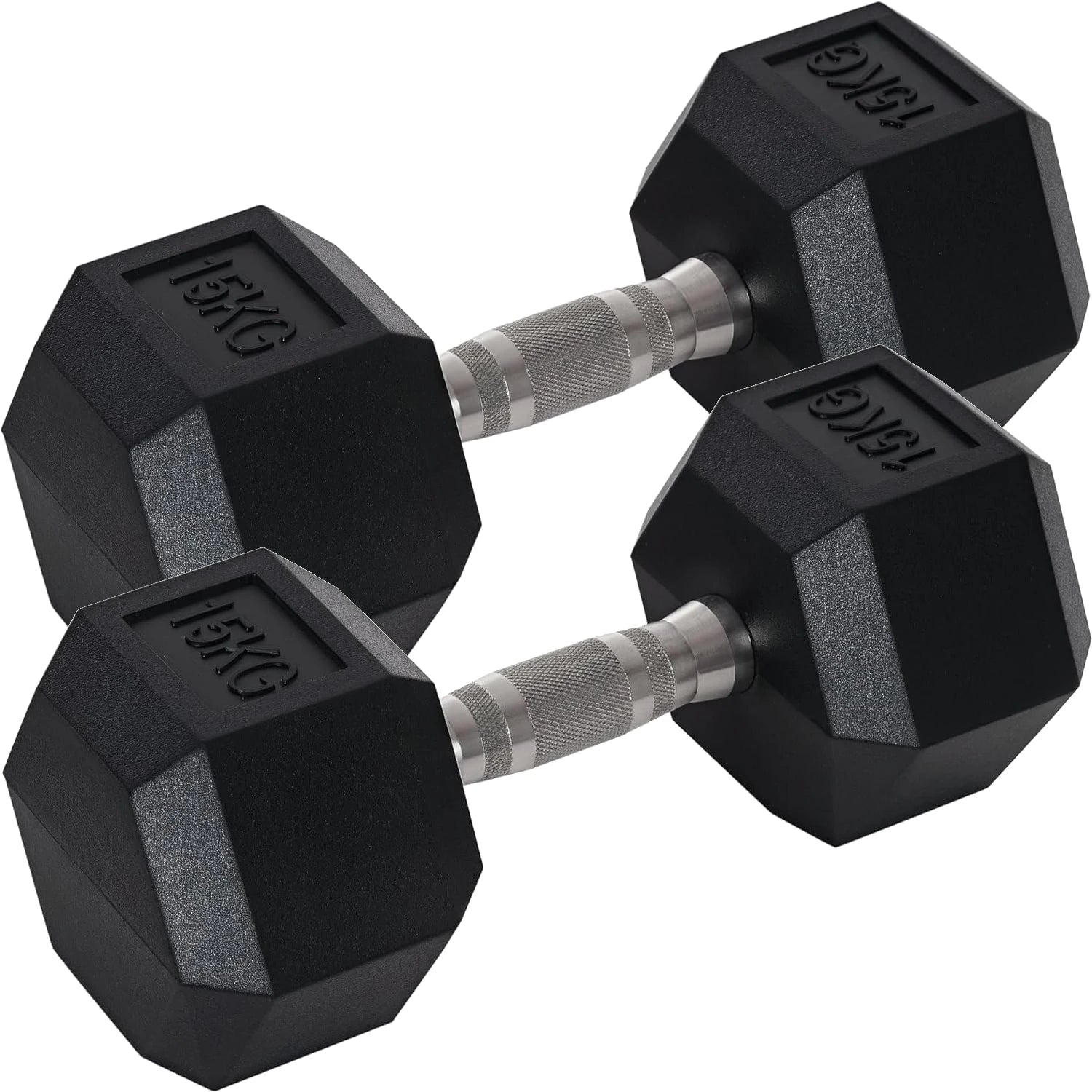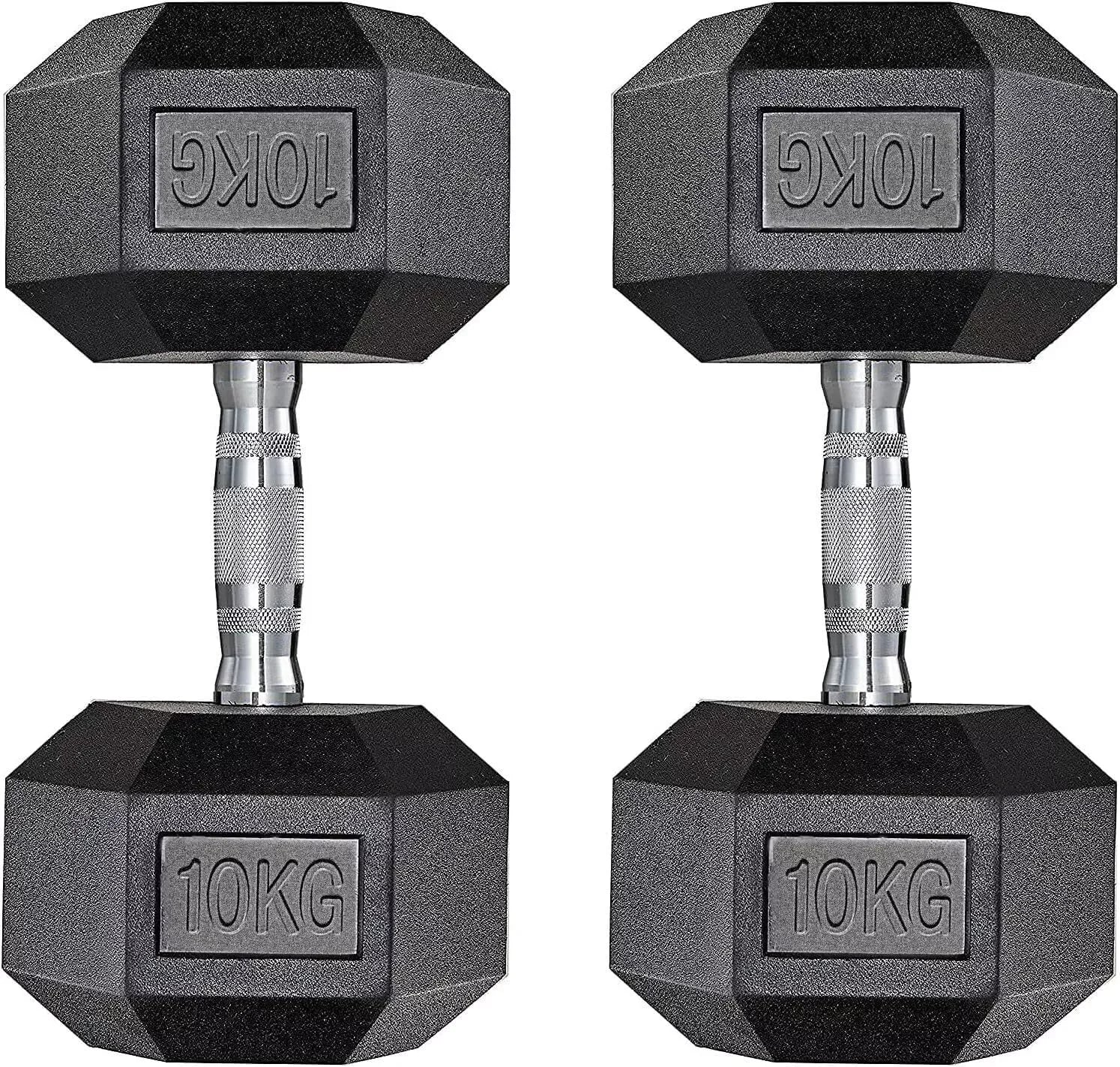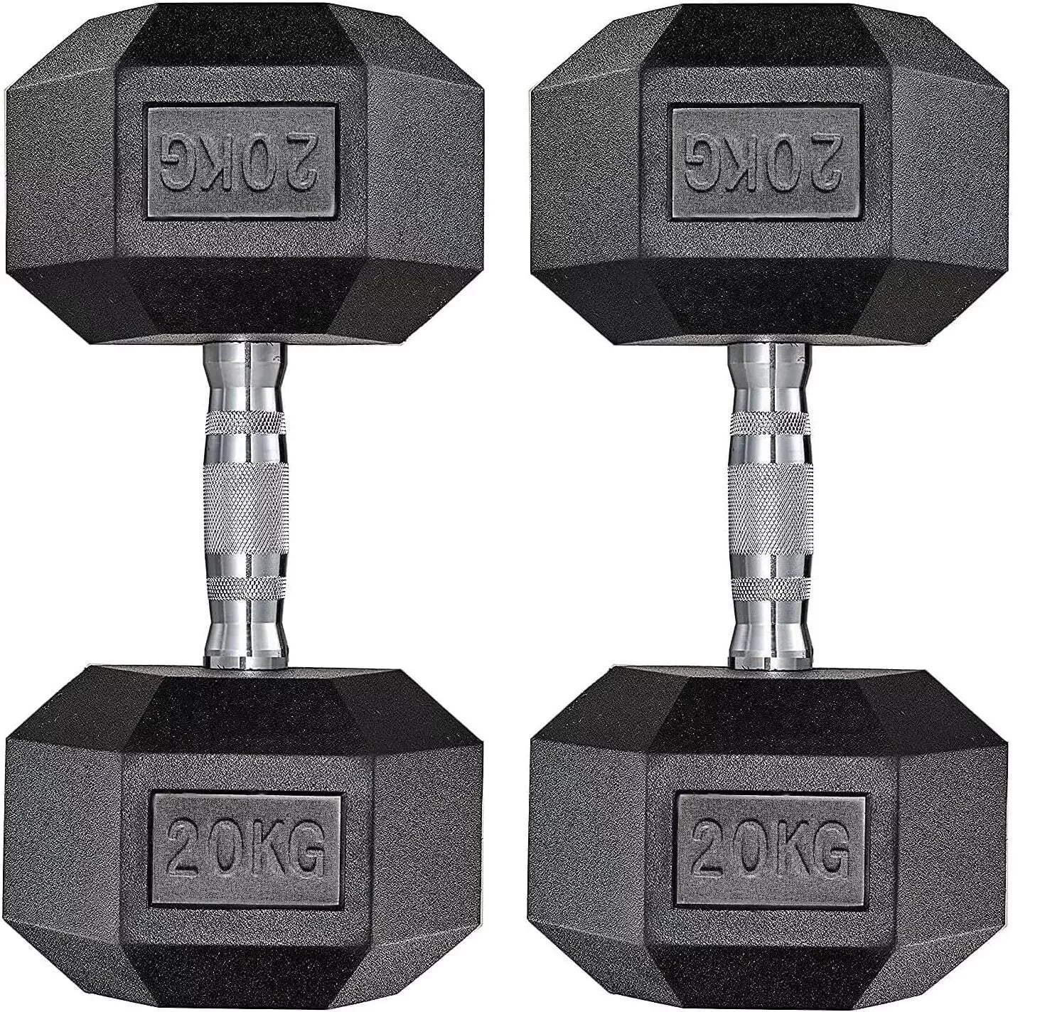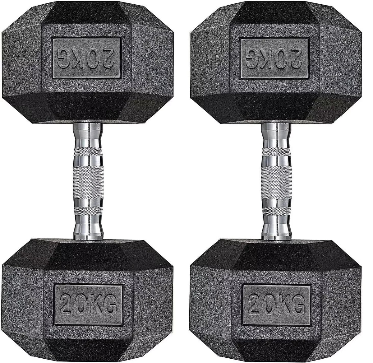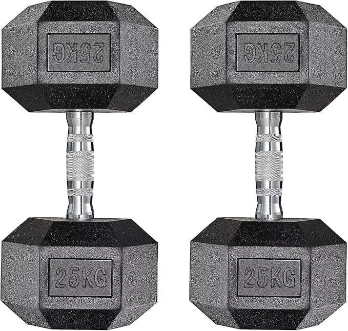 Hexagon hantelset 10 20 25 kilogram gummibelagd par