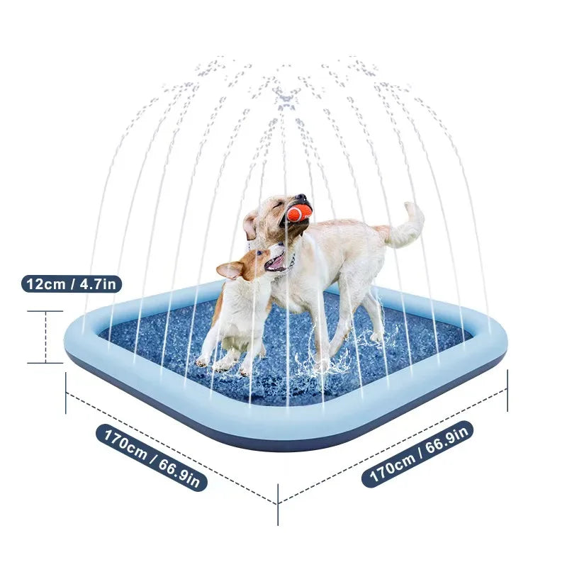Fyrkantig PVC-vattenlekmatta för hundar, utomhus interaktiv sprinklerplatta, sommar badleksak