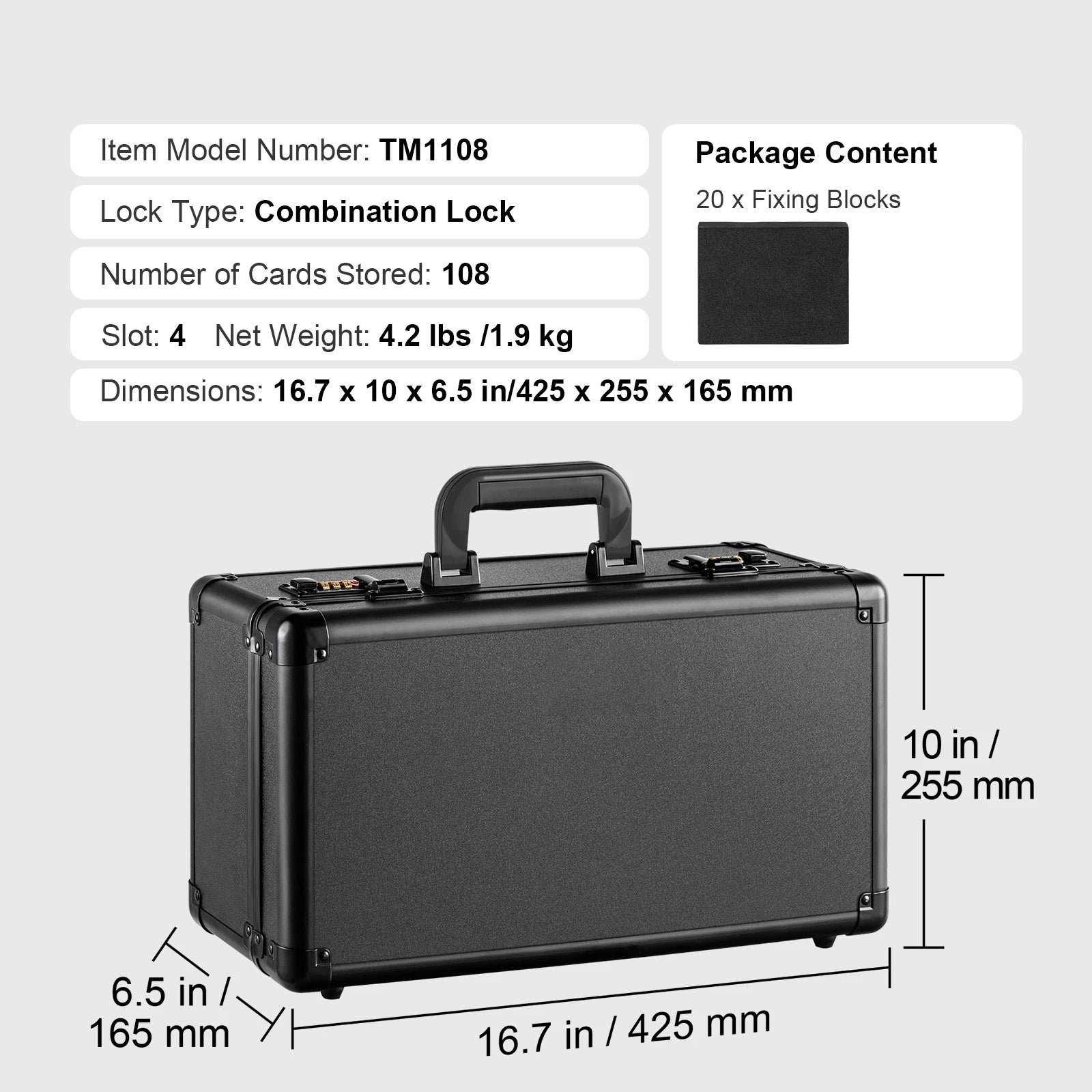 - Portabel och skyddande: Aluminiumlegeringsramen, förstärkta metallhörn och gummifötter dämpar dina kort mot stötar, medan det övre handtaget gör transporten enkel till utställningar eller träffar.