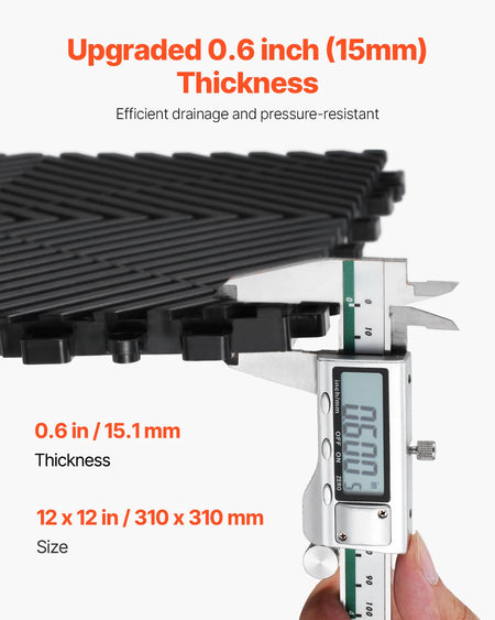 Sammanlåsande dräneringsmatta – 12x12 tum ( halkfri PVC-golvplatta) är en högpresterande lösning utformad för tung användning i garage och kommersiella utrymmen. Denna dräneringsplatta håller golv torra och säkra genom att leda bort vatten och oljor från gångvägar, vilket minskar halkrisker och förbättrar din arbetsmiljö. Dess extra tjocka 15 mm profil ger exceptionell dränering samtidigt som den tryggt stödjer fordonsvikt, så du kan lita på den för långvarig hållbarhet. Den enkla sammanlåsande designen klickas ihop på några minuter – inga verktyg krävs – vilket gör installationen snabb och problemfri. Tillverkad av hållbar PVC erbjuder denna platta en vattentät, lätt att rengöra yta med ett enfärgat mönster och en pusselstilad yta för extra grepp och stil. Finns i svart, grått eller grönt för att passa ditt utrymme och din preferens.