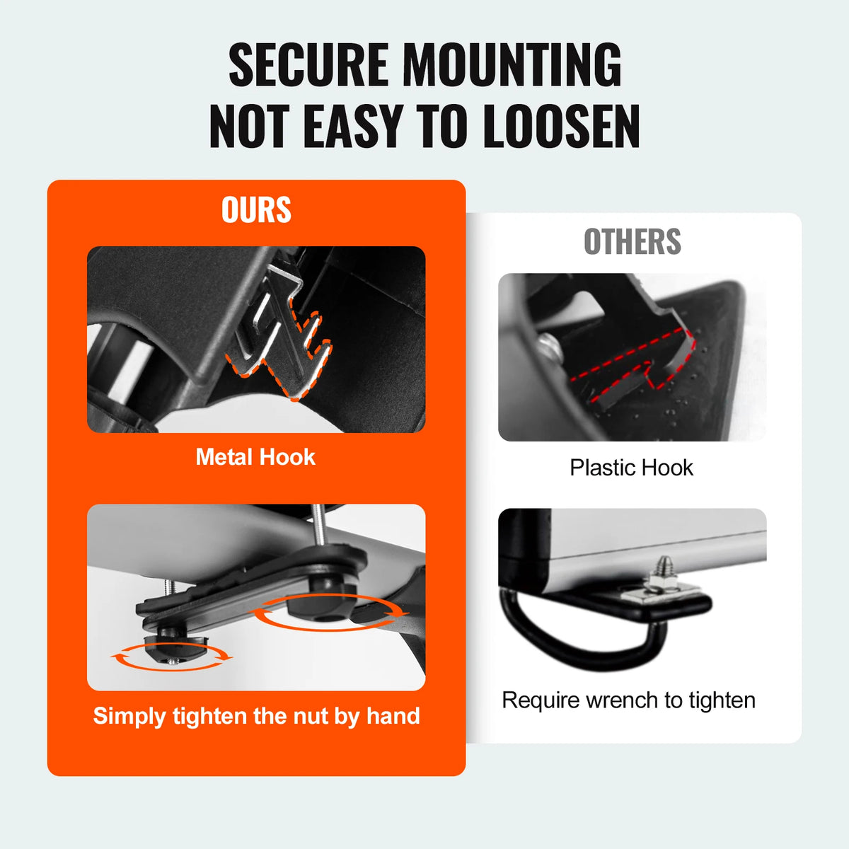 - Enkel, borrfri montering på de flesta tvärbalkar med rekommenderad tvärbalkssektion mindre än 3,9 x 1,2 tum (100 x 30 mm).