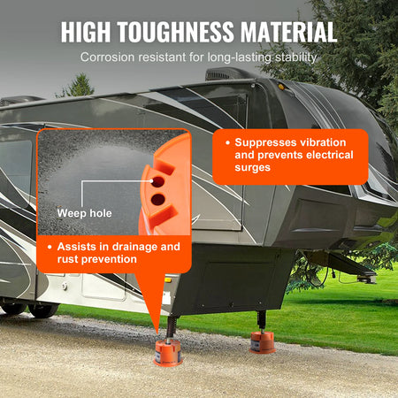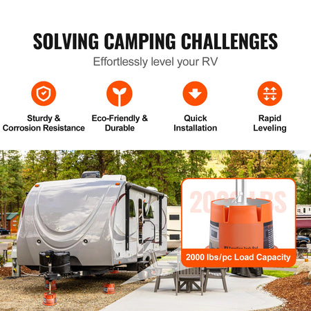 - Enkel nivåjustering på ojämn mark: placera blocken under stabilisatorstöd för att eliminera vickning och göra din husbil jämn och bekväm.