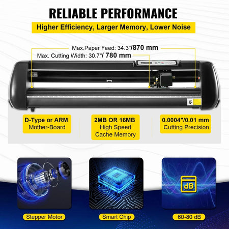 - Mångsidig 34" skärbredd: Idealisk för dekaler, skyltar, värmeöverföringar och större grafik utan att behöva omplacera.