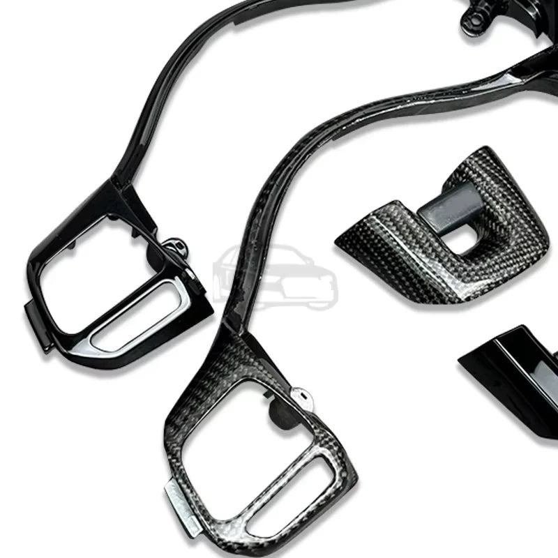 Höj interiören i din VW Golf MK6 GTI med vår Blanka Silver Kolfiber Rattknapp Ram. Utformad för att passa MK6 GTI rattknappsområde, ger denna trim en elegant, modern touch samtidigt som den skyddar de ursprungliga knappknapparna från dagligt slitage. Den livliga silverkolfiberfinishen ger ett premium, tävlingsinspirerat utseende som kompletterar befintliga kolfiberaccenter och mörkare kabintoner. Byggd för hållbarhet, motstår den blekning och mindre repor, vilket gör det till en praktisk uppgradering som fräschar upp din cockpit utan att behöva byta ut hela ratten.