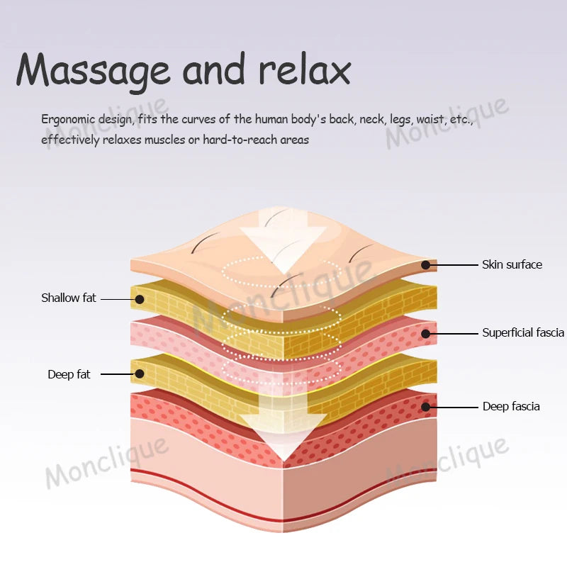 - Lindrar muskelspänningar i nyckelområden (midja, armar, ben, rygg, fötter) med bekväm, kontrollerad tryck.
