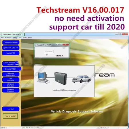 - Programvaruversion tillgänglighet: Techstream V17.00.020 (OS: Windows 10 64-bit) — Fungerar med MINI VCI, OTC Scanner